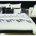 力強いタッチの花模様が印象的なベッドカバーです。くっきりと描かれた花と、影のように淡いトーンで優しく描かれた花が組み合わさり、ドラマチックなイメージを与えてくれます。カバーリングの上部分にはフリルのような折り返し(別売)がほどこされ、甘くゴージャスな雰囲気を演出しています。オリエンタルスタイルとヨーロピアンスタイルが美しく融合し、住む人をリッチな気分にさせてくれるでしょう。アジアンテイストのベッドルームやシンプルなインテリアには、カバーリングの美しさがいっそう引き立ちます。