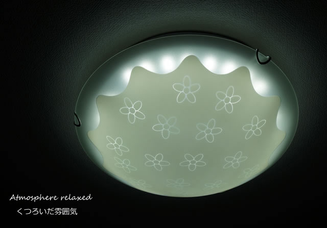 ライトのフォルムの曲線や手書きのような花の模様など、柔らかい雰囲気やぬくもりのあるシーリングライトになっています。