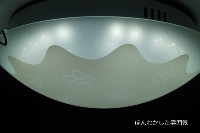 ライトの曲面が大きく模様でおおわれているので、光の量が控えめになっており、ゆったりとくつろぎたい部屋におすすめです。また小さいお子さんのお部屋につけてあげるのもおすすめです。