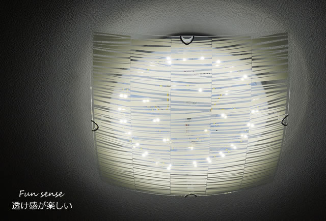 ガラスシェードの透け感が楽しいシーリングライトです。シェードの模様だけでなく、ガラスという素材の特徴も楽しむことができます。