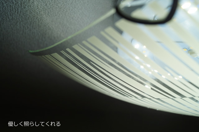 四角形のシェードのなかに、縦のラインと横のラインがバランスよく使われていて、美しさも持っています。