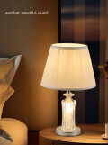 ディテールにこだわった繊細なデザインが魅力のテーブルランプ このテーブルランプは、全体的なフォルムはベーシックで、いわゆるテーブルランプらしいシルエットですが、ランプシェードやそれを支えるボディの繊細なデザインが魅力的となっています。 シェードは布製で、ミリ単位と言えるほどの細かなドレープがほどこされています。 シェードの両サイドは別布でパイピングされているので、まるで貴婦人のドレスのようなきめ細やかなドレープの美しさが目に飛び込んできます。 このシェードを支えているボディは、切り子細工がほどこされたクリスタル。 ボディのラインをほんの少し内側にカーブさせることで、女性らしいエレガントなフォルムを作りだしています。 スイッチを入れると、シェードのランプだけではなく、このボディ部分も明かりとなってクリスタルを輝かせます。 刻まれた模様がくっきりと浮かび、そのエレガントなたたずまいは、オールドバカラの香水瓶を思わせます。 ボディの先端には、やはり細かな模様の飾りパーツがほどこされ、貴婦人の首元を飾るチョーカーのようです。 そこから伸びるネック部分と、土台のベースはメタリックなシルバー。 ファブリックとクリスタル、シルバーの3つの素材が見事に調和されています。 3段階の調光ができるのもポイントで、静寂をもたらす白色光から、ほんのりとした温かみを運ぶ色合いまで、気分や季節に合わせて楽しめます。 シンプルな中に、エレガンスと繊細さが融合されていて、ちょっと贅沢な贈り物としてもおすすめです。