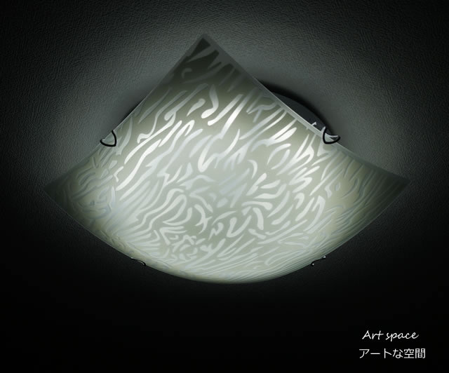 四角形のカバー全体にほどこされた模様がとても重厚な雰囲気を放っているシーリングライトです。ライトをつけた時には、カバー全体の模様のうち、中央部分が丸く明るく浮かぶように見えるので、とても幻想的な雰囲気を作ってくれます。