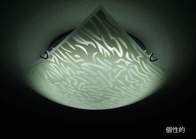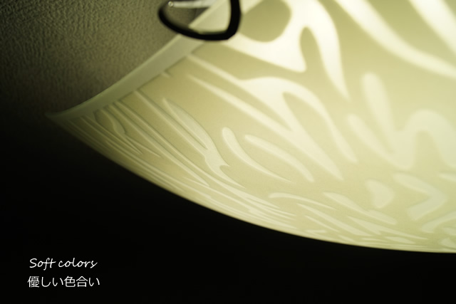 いびつな線がいくつも組み合わさって、複雑で個性的な模様になっているので、見あげる角度によっていろんな模様を楽しむことができます。模様の部分が明るくなるので、複雑な模様を通じて光の濃淡の差を楽しめます。複雑な味わいを楽しみたい、という方にはおすすめです。