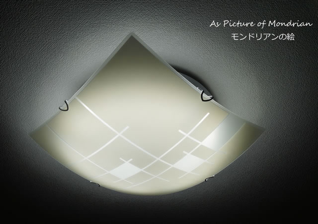 白いキャンバスに黒い直線と、赤・青・黄色の3原色で描かれたコンポジションで有名な画家モンドリアンを彷彿とさせるデザインが、とってもお洒落なシーリングライトです。四角いシェードが、絵画のような佇まいを醸し出し、さり気ない存在感を出しています。日中でも、立派なインテリアとしてお部屋を演出してくれそうです。